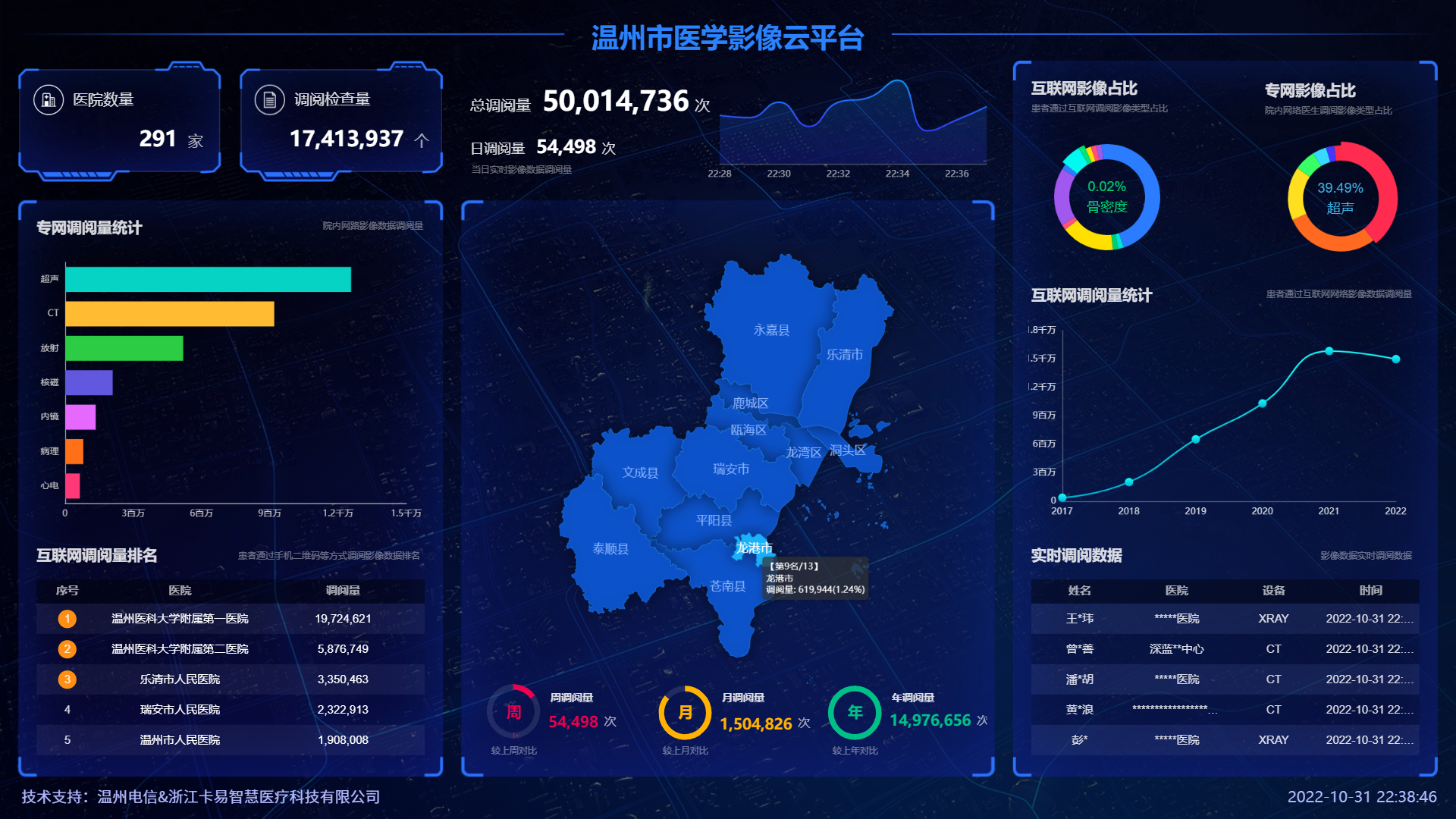 浙江省內最大云影像平臺 日均移動調閱量7.5萬次 平臺總調閱量超過一億次 2018年浙江省醫(yī)療衛(wèi)生服務領域“最多跑一次”改革十佳案例(影像云唯一)